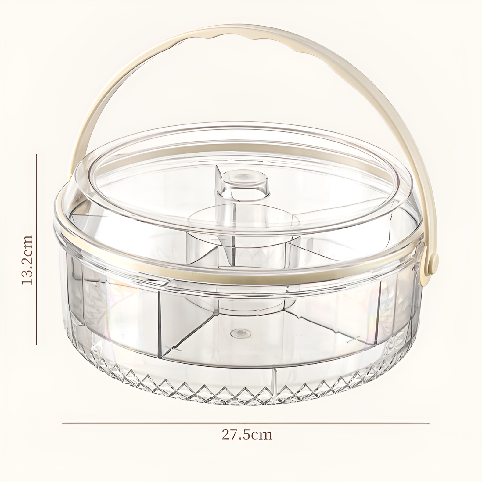 ハンドル付き5グリッド鮮度保持フルーツトレイ、密封防湿ドライフルーツトレイ、ポータブル家庭用ドライフルーツトレイ、蓋付き丸型スナックボックス