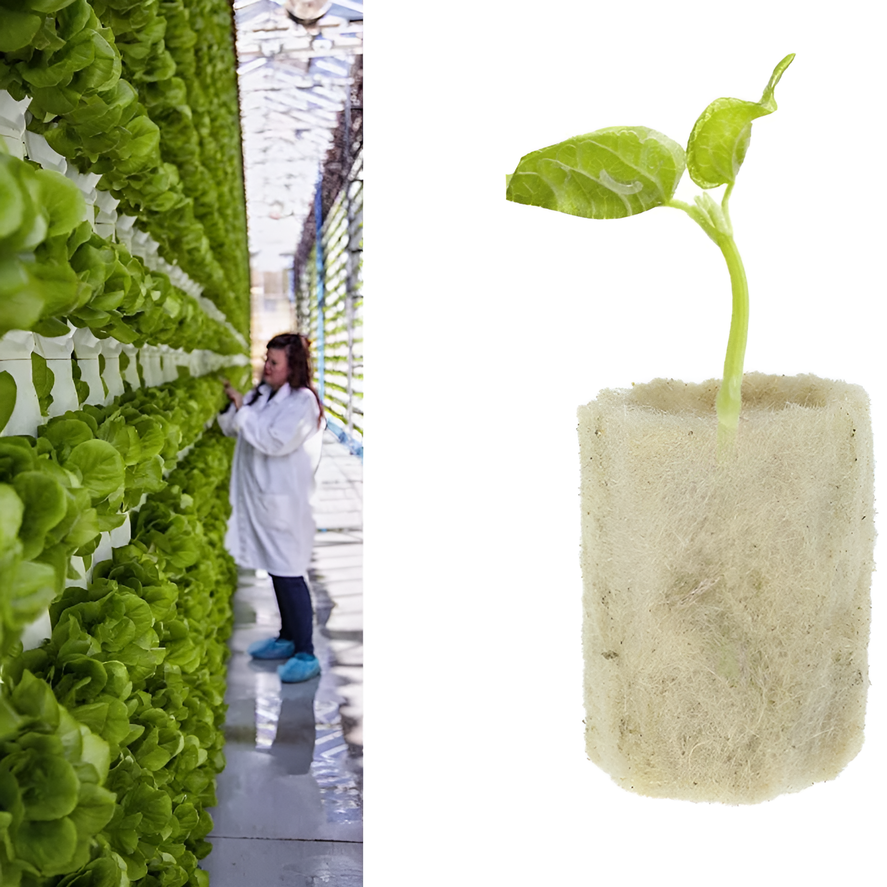 水耕栽培で使用されているロックウールプラグのクローズアップ