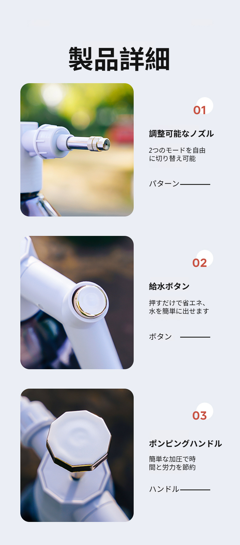特殊圧力設計のスプレーボトル詳細